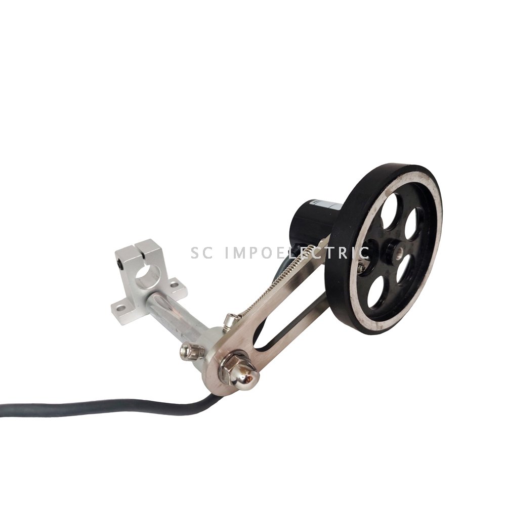 Sistema encoder con soporte personalizable para diferentes aplicaciones, diferentes tipos de rueda (de goma, silicona, y metálica) soporte con diferentes medidas de largo, encoder con pulsos personalizable (100-1024 ppr).
